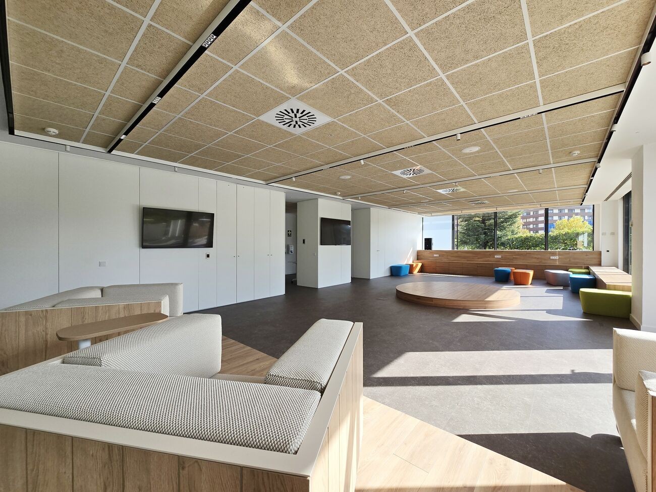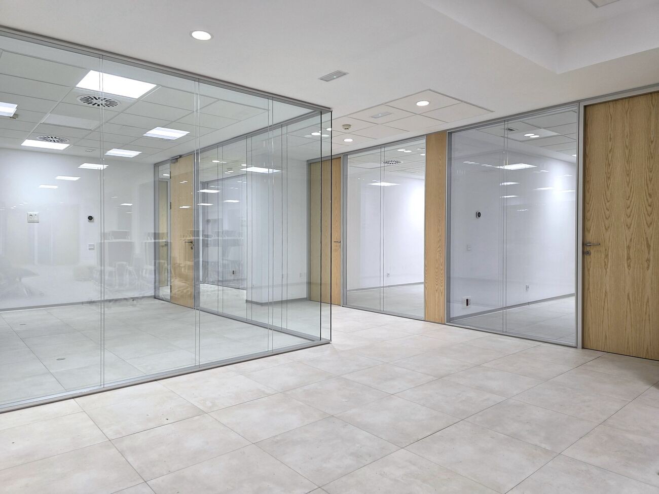 Mamparas opacas con el máximo grado de absorción al ruido aéreo, resultado de eliminar la transmisión de vibraciones potenciando la estética en todos los alzados.