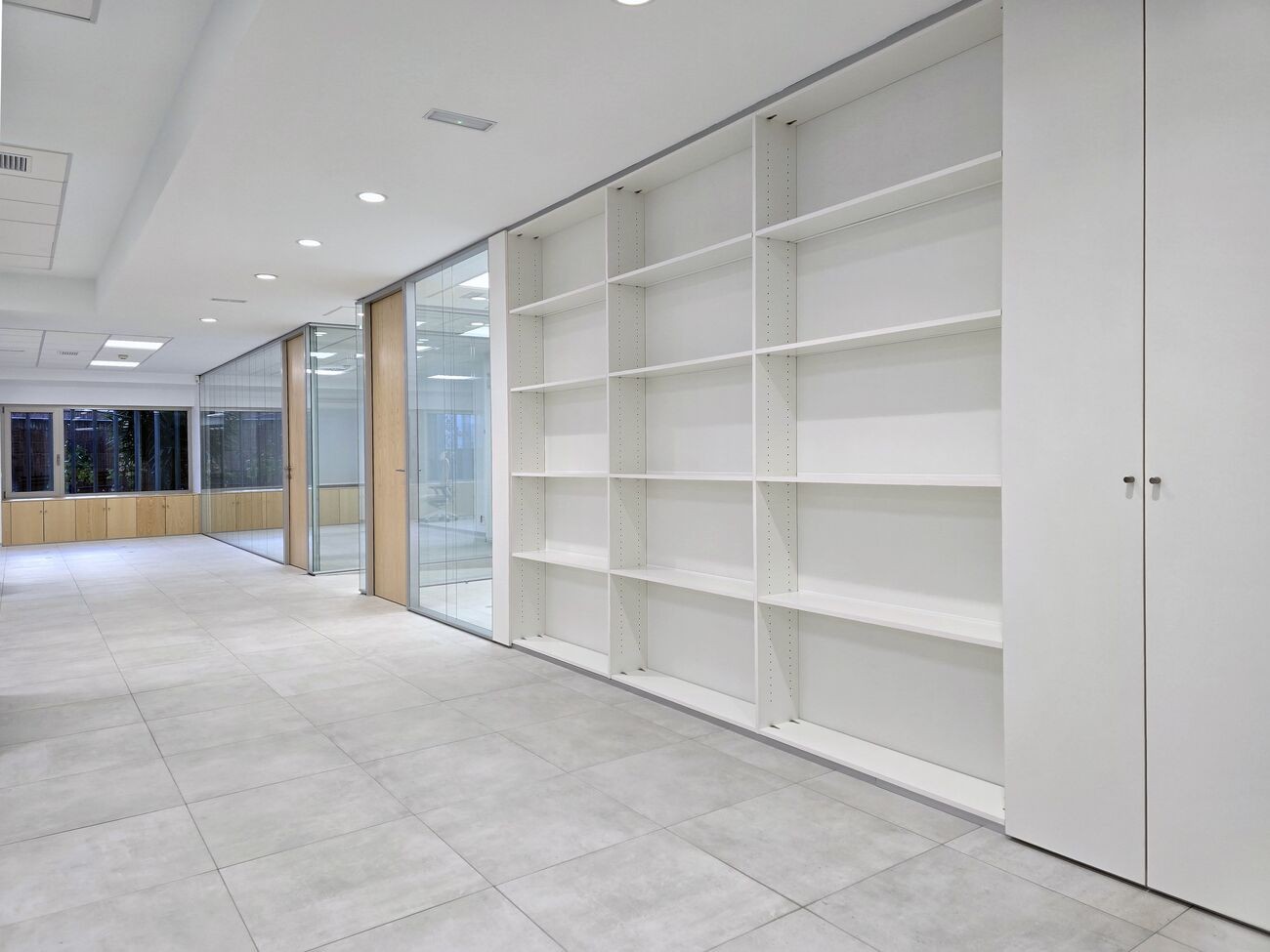 Sistema TECNO KIT: Fabricado en su totalidad con tableros para muebles-librería, con ausencia de puertas, dejando a la vista el total de elementos almacenados. O mixtos, conjugando el alzado con ellas.